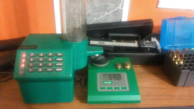 All I can say is wow. I have been using powder scoops and a trickler to weigh powder. Mapper hooked me up with a guy selling this set up a couple months ago and I've finally had a chance to set it up. I took all my wife's sewing shit off her desk and took it over, she doesn't know yet, but that will turn into a different thread I imagine...... The speed and convenience of this set up is awesome. Whatever you press in, this gig drops it within +-.1 gr. I may have to pull a Ray Rice to keep the desk, but I'm running a single stage press in half the time....Attachment 11267