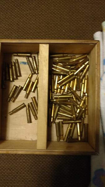 30-30 brass. Once fired, ran it through the shaker, but I think I need new medium. Some of it might be too corroded to use, but I don't know. Anyhow, I'll add the rest of the brass as I sort it. Mostly Hornady and Winchester headstamp, some LC.